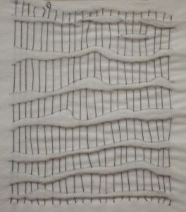 Straight stitches following patterns in the sand at Oxwich Bay